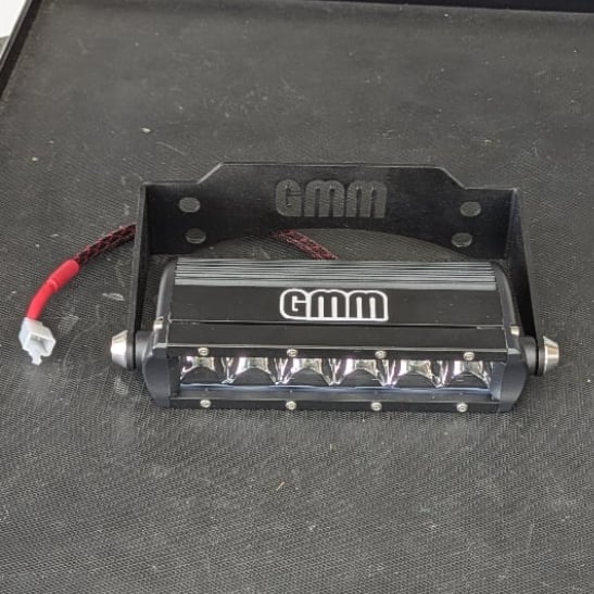 LED triple tree headlight. 1 stage of light, no hi low. Bracket made from aluminum. This is a solid way to clean up your battery box if you aren't wanting to rock the OEM headlight setup.